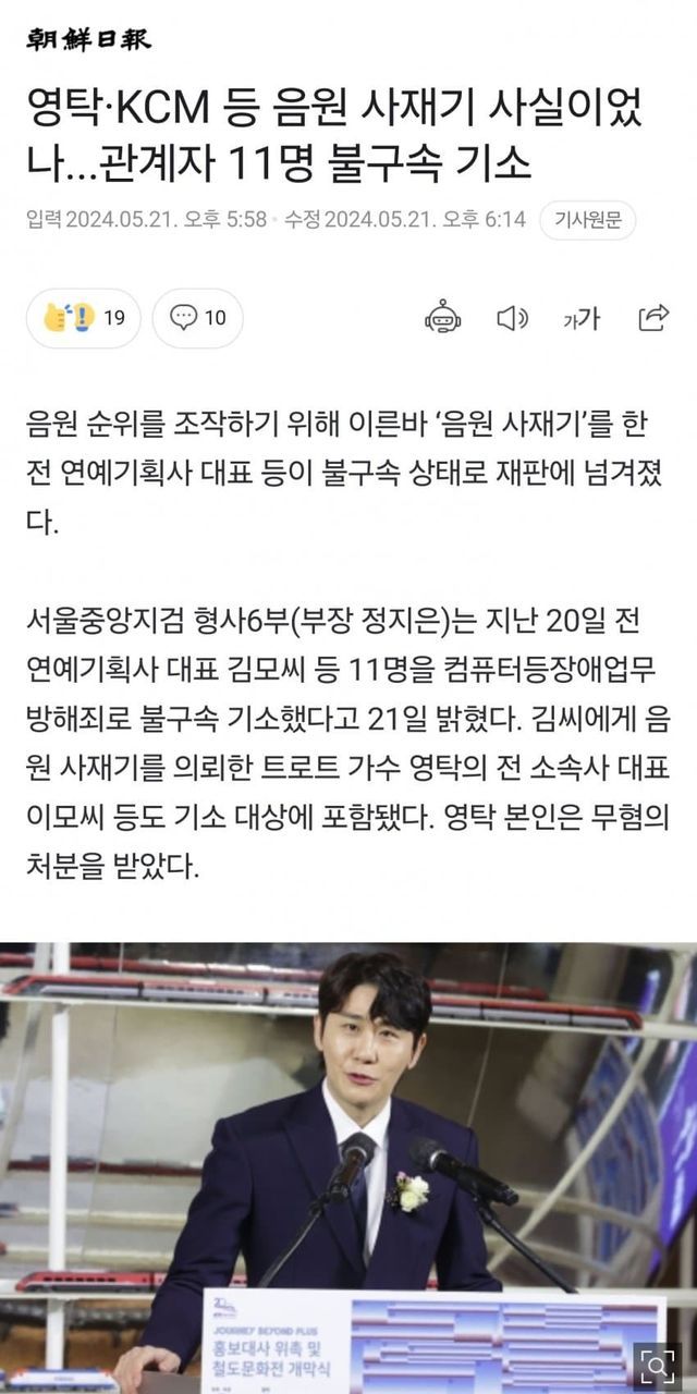21일 서울중앙지검 형사6부(부장검사 정지은)는 2018년 12월부터 2019년 12월경까지 500여 대의 가상 PC와 대량구입한 IP, 불법 취득한 개인정보 1627개를 이용해 국내 주요 음원사이트에서 15개 음원을 172만 7985회 반복재생해 음원 순위를 조작한 전 연예기획사 대표 A씨 등 11명을 컴퓨터등장애업무방해죄로 20일 불구속 기소했다고 밝혔다