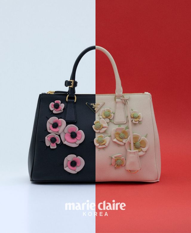 플라워 모티프 아플리케 장식을 더한 블랙과 화이트 컬러의 라지 갤러리아 백 모두 가격 미정