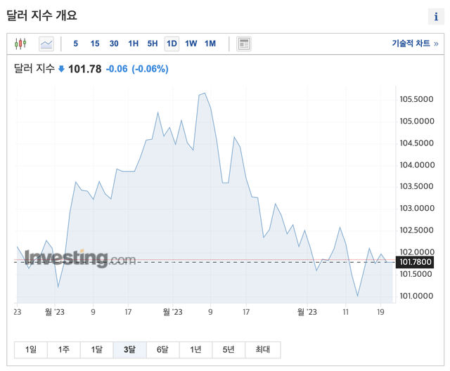 미중갈등으로인해 최근 달러의 가치를 나타내는 지표인 달러인덱스는 계속해서 떨어지는중