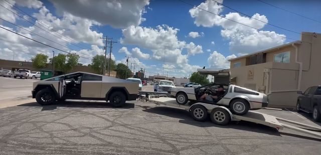 유튜브 채널 ‘Hoovies Garage’의 타일러 후버(Tyler Hoover)는 DMC 들로리안(공차중량 1300kg 내외)을 인근 정비소로 견인하기 위해 듀얼 모터 사이버트럭을 이용했다.