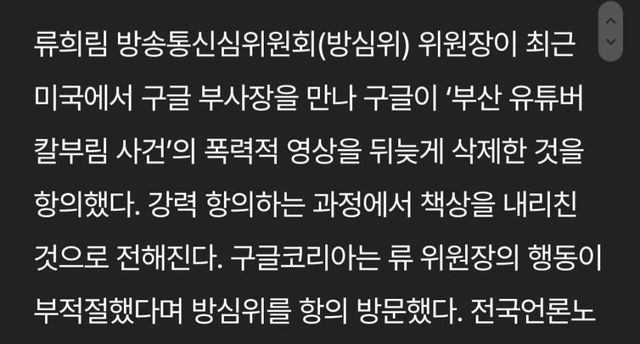 부산 칼부림사건 영상 늦게 내렸다고 방심위원장이 구글본사 방문해서 책상 내려치고 호통하고 옴