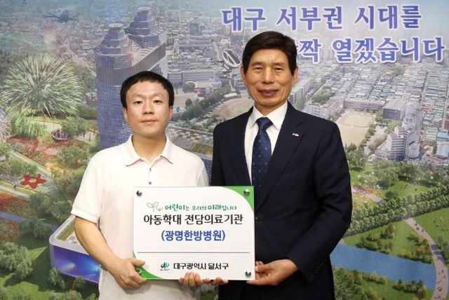 광명한방병원은 계명대 동산병원, 삼일병원, 웰키즈소아청소년과의원, 뿡뿡이연합소아청소년과,미래여성병원에 이어 6번째 달서구 아동학대 전담의료기관으로 지정된다. 피해아동에 대한 신속한 치료와 위기아동 발굴 뿐만 아니라 의료자문 및 아동학대 신고, 아동학대 예방까지 통합적인 의료서비스 업무를 지원하게 된다.