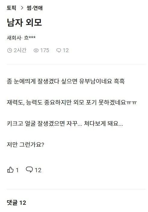 물론 잘생겼는데 결혼이나 연애를 “안” 하는 경우가 전혀 없지는 않겠지만,