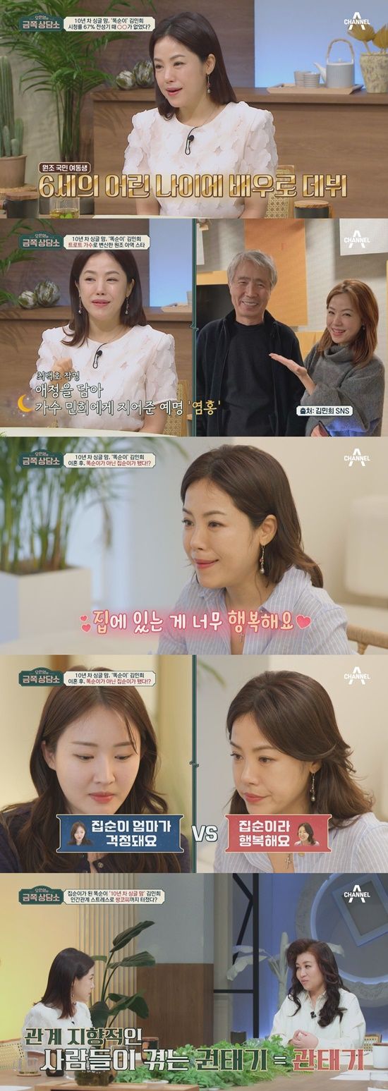 하지만 김민희는 "장 보기는 배달 서비스, 옷은 인터넷 쇼핑을 이용하면 되고 집에서는 하루 종일 할 일이 많아 바쁘고 혼자만의 고요함이 좋다"라며 일명 집순이로서의 만족감을 드러낸다.