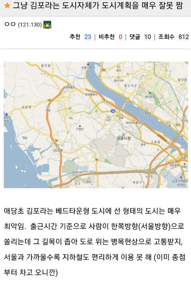 이렇게 생김. 전형적인 선형도시라 출근시간이 되면 화살표(서울)방향으로 사람이 쏠리는 구조. 간혹 일산이나 인천으로 빠지는 교통량도 있지만 대부분 서울로 출퇴근하는 수요가 가장 큼. 그와중에 김포골드라인마저 그따구로 지으니문제점이 안 생길래야 안 생길수가 없음.
