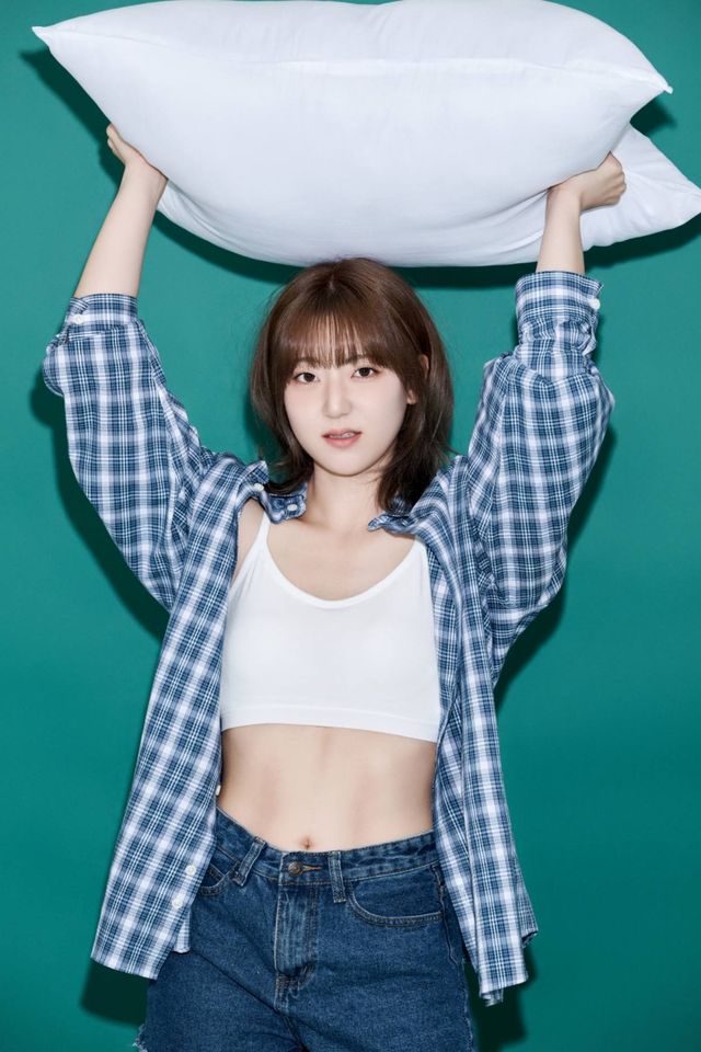 또 경서는 초록색 배경, 캐주얼한 스타일링, 베개 소품과 어우러져 청초하면서 러블리한 비주얼을 완성했다.