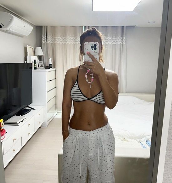 공개된 사진 속 배윤정은 잠옷 차림으로 속옷 상의만 입은 채 군살 없는 상체를 뽐냈다. 선명한 11자 복근과 잘록한 허리 라인, 볼륨감 있는 몸매는 네티즌들의 이목을 끌었다.