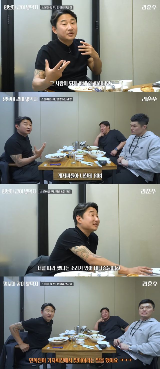 그러더니 이천수는 김진규에게 "근데 원조가 너다. 네티즌들 사이에 너를 따라 했다는 소리가 있다"며 웃음을 자아냈다.
