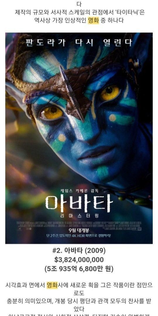 2위. 타이타닉 vs 아바타