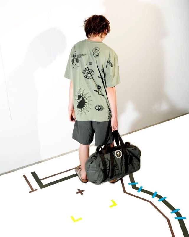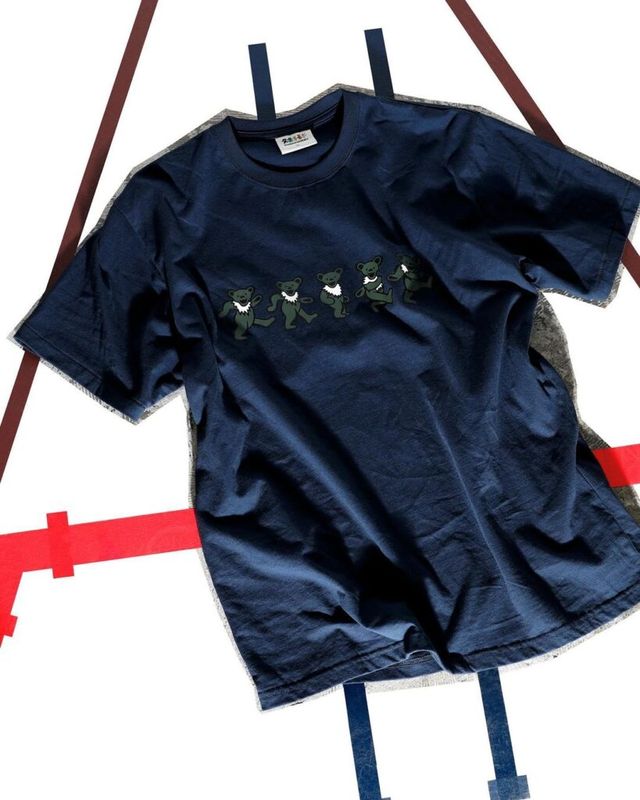 디스이즈네버댓은 그레이트풀 데드를 상징하는 아트워크인 댄싱 베어즈, 스틸 유어 페이스, 스컬 앤 로지스를 디스이즈네버댓만의 방식으로 재해석한 컬렉션을 선보였습니다. 각종 아트워크가 수놓인 티셔츠, 댄싱 베어즈 티셔츠, 메시 소재로 제작된 톱을 공개했는데요. 특히 2023년에 발매해 큰 인기를 얻었던 밀리터리 디자인의 아이코노그래피 앨리스 팩이 이번 협업에서 네이비 컬러로 찾아와 눈길을 끌었죠.