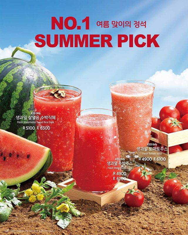 이 외에도 토마토주스와 초당 옥수수 빙수 등 여름 신메뉴들이 가득하다고 하니 가벼운 피서를 보낼 수도 있겠네요!