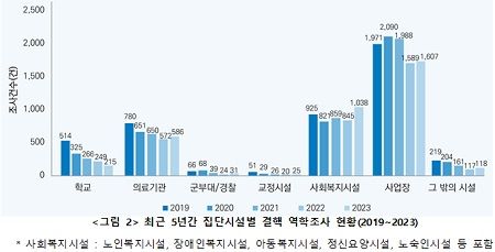최근 5년간 집단시설별 결핵 역학조사 현황(2019~2023)