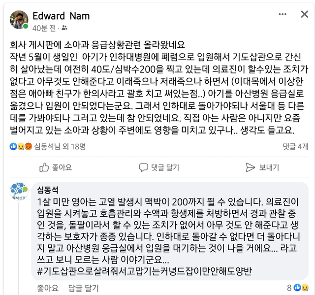기본적으로 고열+맥박상승으로 수액이랑 항생제기관삽관까지 처치했더니 해준거 없다고 하네