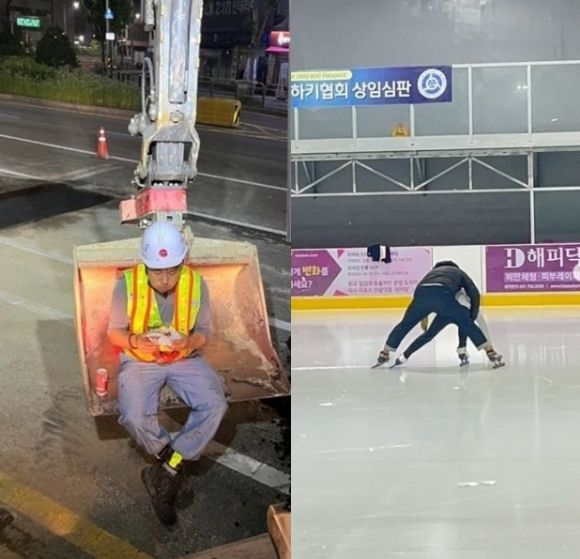 공개된 사진에는 포크레인에 앉아 햄버거를 먹는 김동성의 모습이 담겼다. 또 다른 사진에는 딸과 스케이트를 타고 있는 김동성의 모습이 담겨 있다.