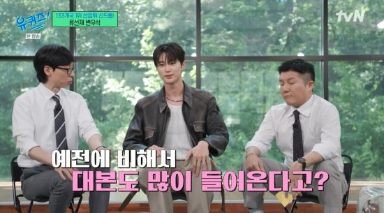 유재석은 "예전에 비해서 드라마나 영화 대본도 많이 들어온다더라"라며 물었고, 변우석은 "10배, 20배 정도. 어제 들었는데 그렇게 들어온다고"라며 자랑했다.