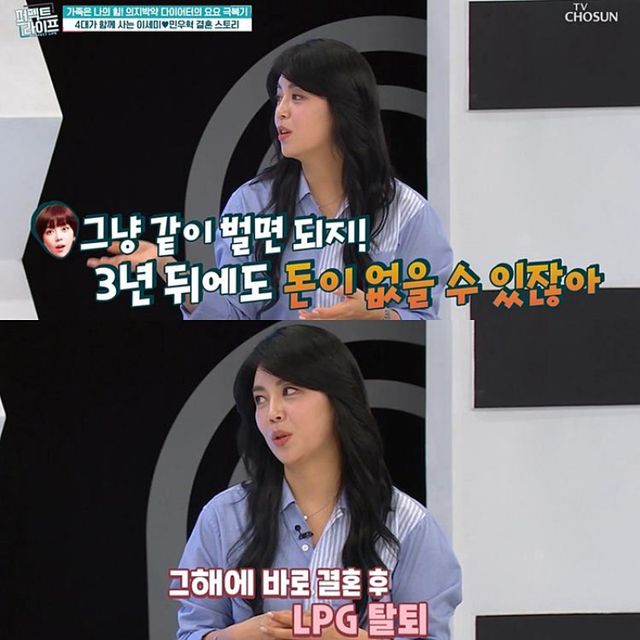 이세미는 “같이 벌면 된다고 했다. 그래서 그해에 결혼했고, 결혼 후 LPG도 탈퇴했다”면서 “남편은 아르바이트하러 치킨집, 카페에서 일했다. 저 역시 무직 상태였기 때문에 회사에 취직 후 쇼호스트가 됐다”고 결혼 초기를 회상했다.
