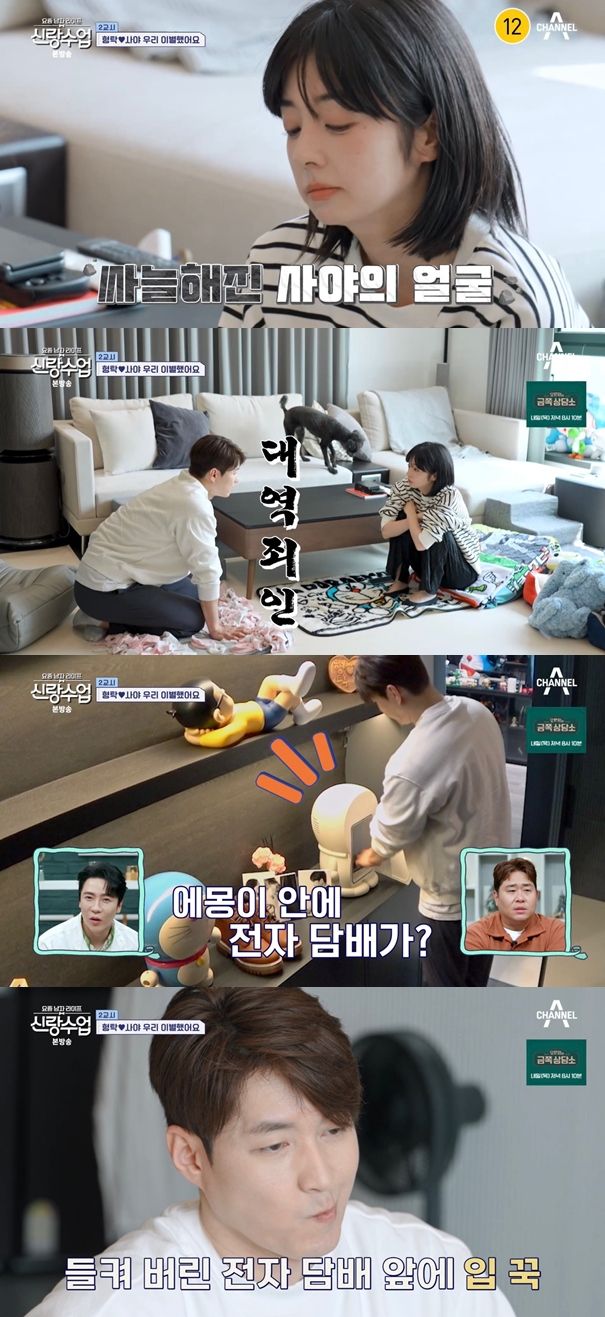 분리수거를 다녀왔다는 심형탁에게 사야는 "앉아봐. 나한테 할 말 없어?"라며 정색을 했다.