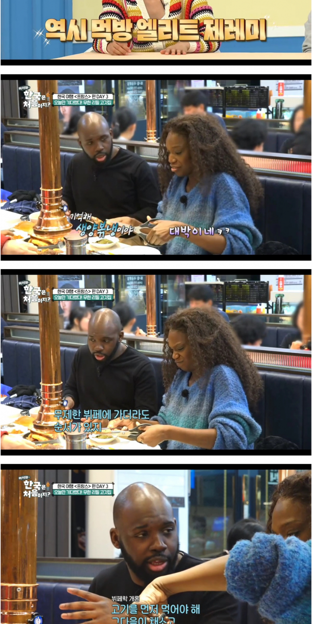여기서 흑인은 인종적 특성을 나타내는 용어로 사용되며, 해당 문맥에서는 고깃집에서 다양한 인종의 사람들이 함께 식사를 즐길 수 있다는 의미로 해석될 수 있습니다. 이는 인종과 관계없이 누구나 편하게 방문할 수 있는 장소임을 강조하는 요소로 쓰였습니다.