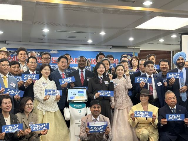 | 2024년 서울 도전페스티벌 시상식이 지난 21일 한국프레스센터 18층 서울클럽에서 개최됐다. 이날 글로벌 리더상을 수상한 서예화 학생(왼쪽 일곱번째)을 비롯해 주요 인사들이 기념촬영을 하고 있다. / 사진=도전한국인본부 |