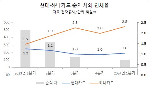 현대카드 관계자는 "순이익은 대손충당금 적립 증가 등의 영향으로 감소했다"며 "우량회원 중심으로 대출하는 등 꾸준한 리스크관리를 통해 업계 최저 수준으로 연체율을 관리하고 있다"고 말했다.