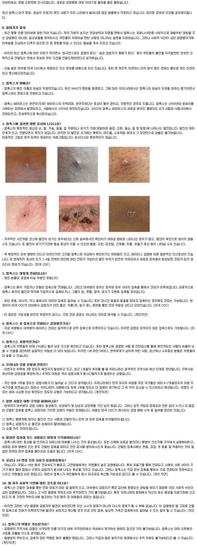 1. 엠폭스는 코로나 19 정도로 위험한 감염병이 아님
