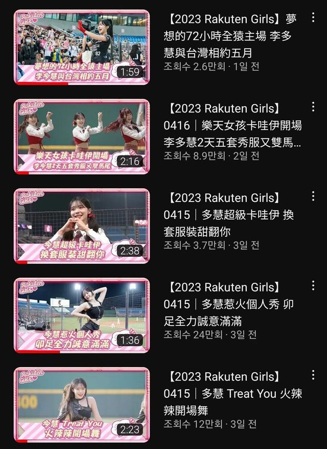 라쿠텐 치어리더 팀 공식 유튜브에서 이다혜 영입후 이다혜 영상을 많이 올리고 있는데…