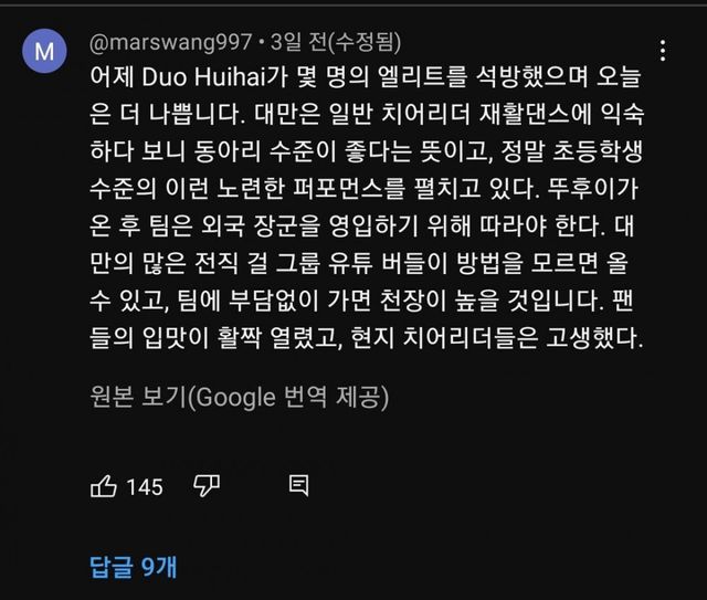 기존 대만 치어리더 춤 = 재활댄스, 동아리 수준, 노인 건강운동ㅋㅋㅋ
