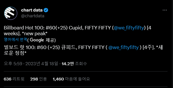 빌보드피셜 new peak로 차트 발표할때마다 순위가 계속 상승 중