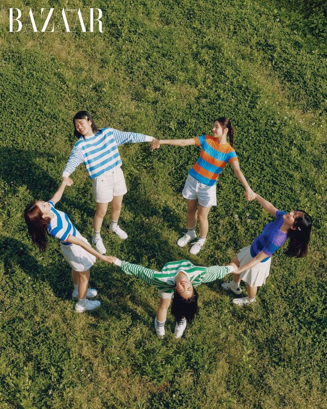(왼쪽 위부터 시계 방향) 심예지가 착용한 톱은29만원대, 쇼츠는 19만원대 Polo Ralph Lauren. 헤어 클립은 Celine by Hedi Slimane. 스니커즈는 9만원대 Nike. 백은송이 착용한 오렌지, 블루 배색 니트 톱은 23만원대, 쇼츠는 19만원대 Polo Ralph Lauren. 스니커즈는 Celine by Hedi Slimane. 김효재가 착용한 니트 톱은 23만원대 Polo Ralph Lauren. 플리츠 스커트는 53만원 Juun J. 헤어 클립, 스니커즈는 Celine by Hedi Slimane. 양지윤이 착용한 그린 컬러 스트라이프 톱은 29만원대 Polo Ralph Lauren. 스커트는 We11done. 슈즈는 8만원대 Converse. 차승현이 착용한 니트 톱은 23만원대 Polo Ralph Lauren. 쇼츠는 27만원대 Eenk. 스니커즈는 New Balance × Miu Miu. 양말은 모두 에디터 소장품.