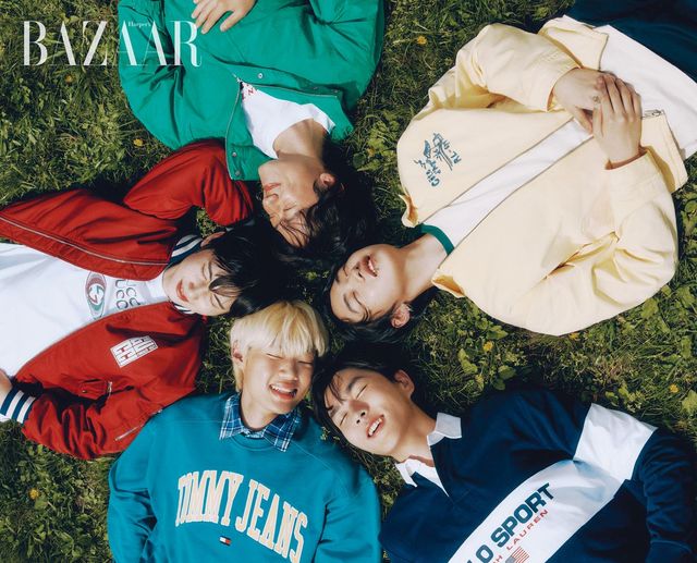 (왼쪽부터) 유남균이 착용한 보머 재킷, 티셔츠, 팬츠, 스니커즈는 모두 Gucci. 박종범이 착용한 레터링 톱은 14만원대 Tommy Jeans. 이너 셔츠는 1017 Alyx 9sm. 쇼츠는 Adidas Originals. 스니커즈는 11만원대 Puma. 김성준이 착용한 점퍼는 36만원대 Tommy Hilfiger. 티셔츠는 47만원 Dsquared2. 쇼츠는 30만원대 Golden Goose. 스니커즈는 11만원대 Puma. 손승모가 착용한 재킷은 Polo Ralph Lauren. 톱은 5만원대 Adidas Originals. 쇼츠는 15만원대 Tommy Hilfiger. 스니커즈는 13만원대 New Balance. 김기범이 착용한 럭비 셔츠는 25만원대 Polo Ralph Lauren. 쇼츠는 Dolce & Gabbana. 스니커즈는 Gucci. 양말은 모두 에디터 소장품.