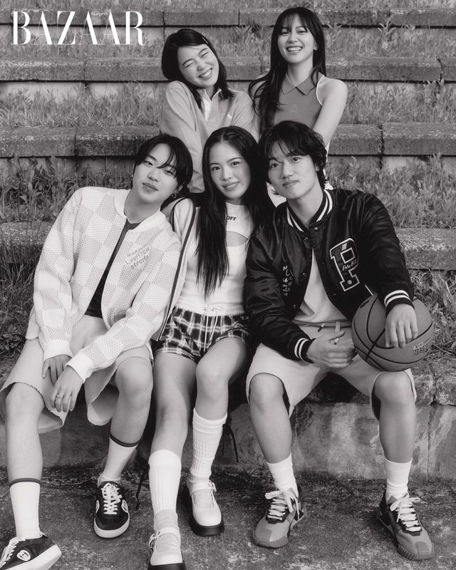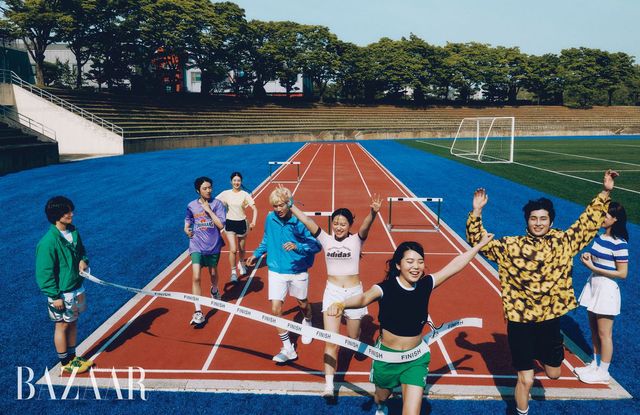 (왼쪽부터) 김성준이 착용한 재킷은 36만원대 Tommy Hilfiger. 톱은 47만원 Dsquared2. 쇼츠는 30만원대 Golden Goose. 스니커즈는 11만원대 Puma. 손승모가 착용한 티셔츠는 49만원 Dsquared2. 쇼츠는 19만원대 Polo Ralph Lauren. 스니커즈는 12만원대 Nike. 백은송이 착용한 티셔츠는 5만원대 Adidas Originals. 쇼츠는 Sea New York. 스니커즈는 Celine by Hedi Slimane. 박종범이 착용한 트랙 재킷은 35만원대, 쇼츠는 15만원대 Tommy Hilfiger. 이너 톱은 Polo Ralph Lauren. 스니커즈는 1백23만원 Valentino Garavani. 김효재가 착용한 크롭트 톱은 5만원대 Adidas Originals. 쇼츠는 19만원대 Polo Ralph Lauren. 스니커즈는 Celine by Hedi Slimane. 심예지가 착용한 톱은 39만원대 Patou. 트랙 쇼츠는 6만원대 Adidas Originals. 스니커즈는 9만원대 Nike. 유남균이 착용한 윈드브레이커는 64만원대 Sandro Homme. 카고 쇼츠는 76만원 Moschino. 차승현이 착용한 니트 톱은 23만원대 Polo Ralph Lauren. 플리츠 디테일 쇼츠는 27만원대 Eenk. 스니커즈는 New Balance × Miu Miu. 양말은 모두 에디터 소장품.