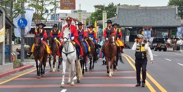 한편 3년째 전통문화 재현 행사에 동참하고 있는 자치경찰기마대는 지난해부터는 전통의복을 착용해 보는 이들의 큰 호응을 얻고 있으며, 올해에도 5월 25일과 10월 26일 등 2회에 걸쳐 진행할 계획이다.