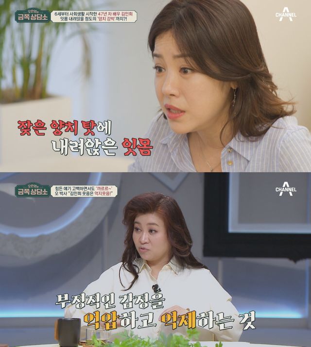 김민희의 이야기를 들은 오은영 박사는 "고통스러운 얘기를 할 때도 웃어버리는 등 반동형성을 한다. 극도의 안 좋은 감정을 반대로 표현하는 것"이라고 설명한다.
