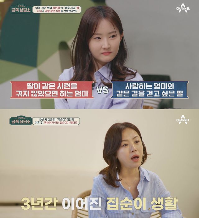 23일 방송되는 채널A '오은영의 금쪽 상담소'(이하 '금쪽상담소')에는 원조 국민 여동생 '똑순이'에서 노래하는 배우 '염홍'이 된 김민희, 서지우 모녀가 방문한다.