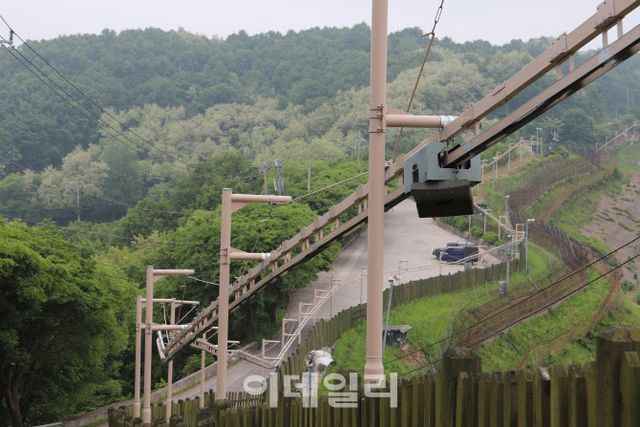 이동식 레일로봇 카메라는 공중에 레일을 설치해 감시카메라를 달아 놓은 형태다. 즉각적으로 접근하기 어려운 경사지에 신속히 기동해 감시할 수 있고, 일정 구간을 이동하며 볼 수 있다. 사람의 객체를 AI가 인식해 표시해주는 AI 객체인식 능력을 갖추고 있어 현재의 과학화시스템을 보완하는 감시체계로 활용 중이라고 부대 관계자는 전했다.