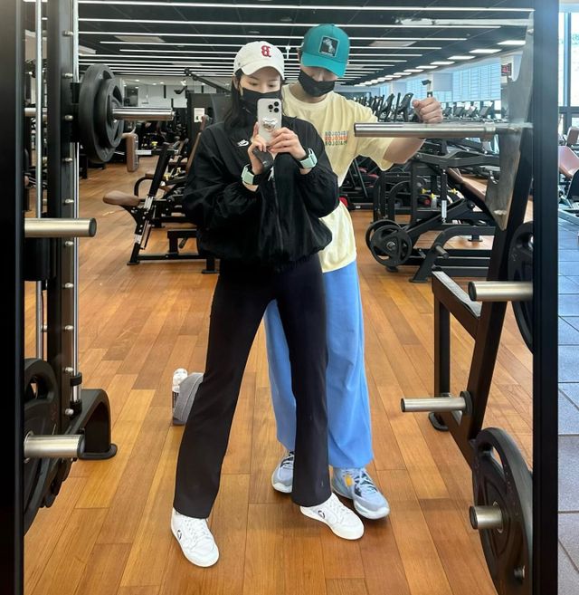 공개된 사진에서 류이서는 운동복 차림으로 전진과 함께 헬스장을 찾았다.