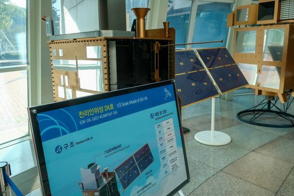 충북 진천 국가기상위성센터에 전시된 천리안위성 2A호 모형. ⓒ 연합뉴스