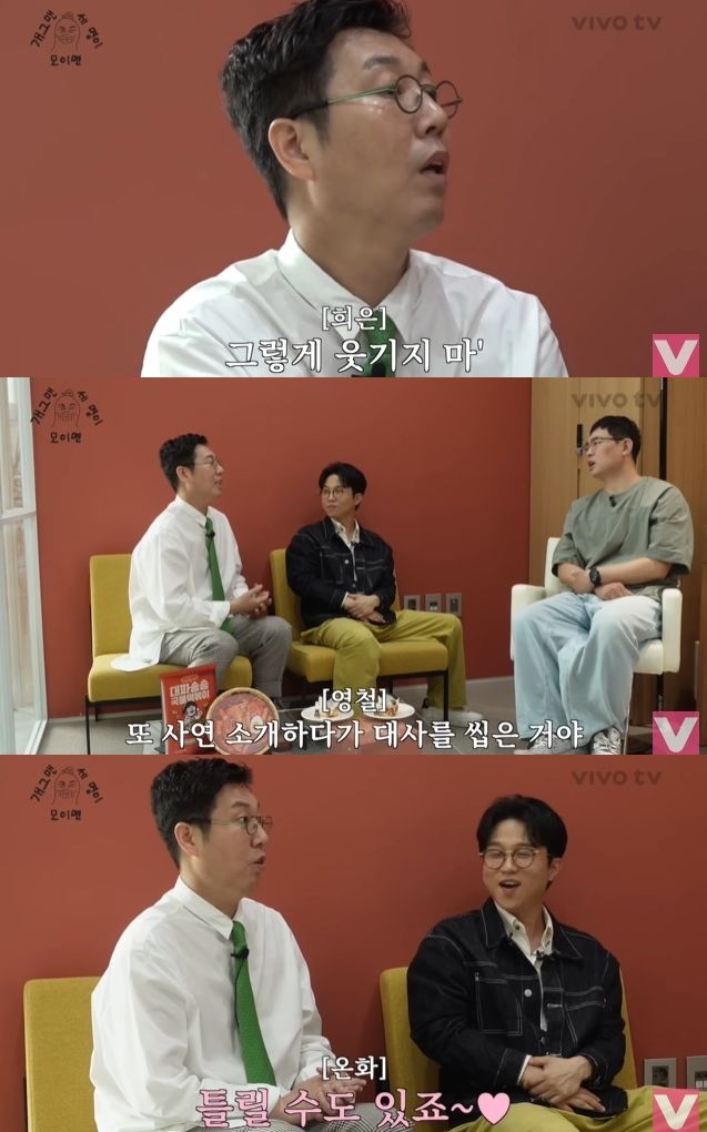 김영철은 "그러고 나서 다음 주에 라디오에서 성광이가 또 대사를 씹었다. 실수하고 내 눈치를 보는데, 내가 '틀릴 수도 있죠'라며 (온화하게 대했다)"고 떠올렸다.