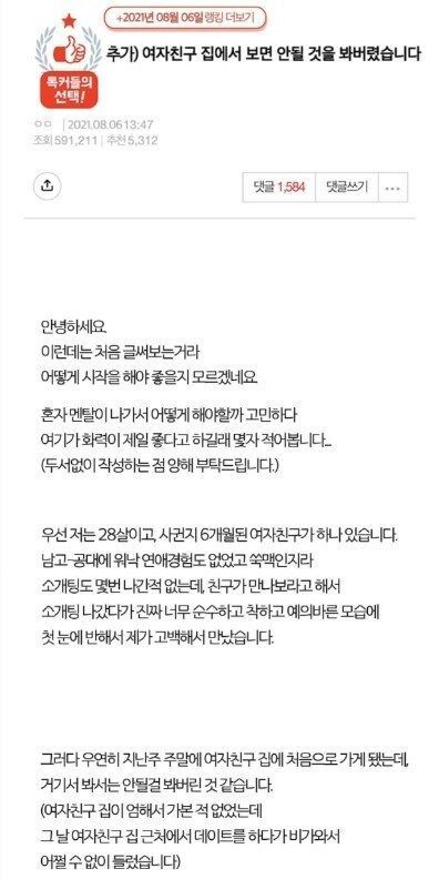 여자친구 집에서 못볼걸 본 썰