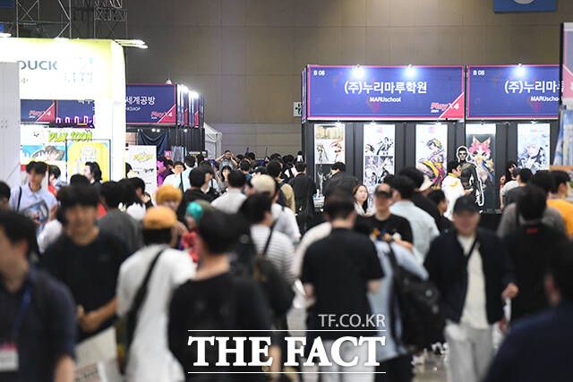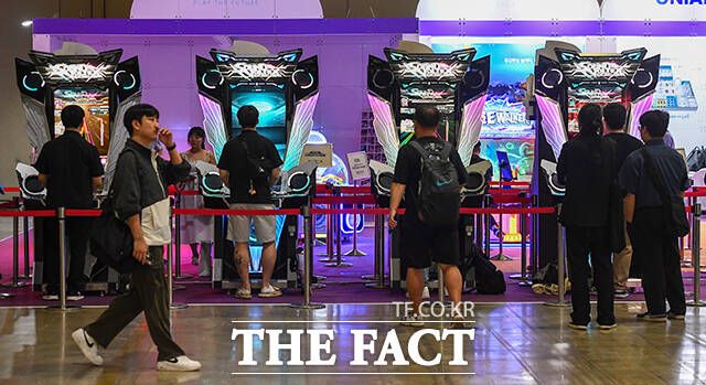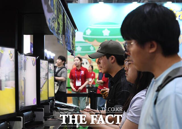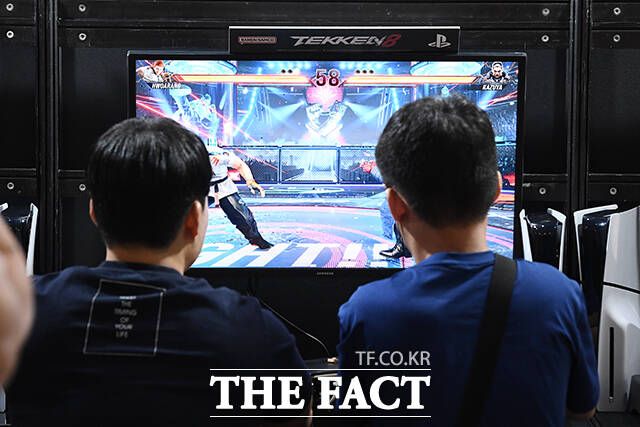 [더팩트ㅣ고양=장윤석 기자] 2024 플레이엑스포가 23일 오전 경기 고양시 킨텍스에서 열린 가운데 참가자들이 게임을 즐기고 있다.