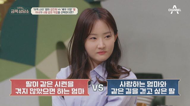 오은영 박사는 인간관계에 지칠 대로 지친 김민희가 딸 서지우와의 관계에는 문제가 없을지 살피고자 두 모녀의 데이트 영상을 시청한다. 배우를 꿈꾸는 딸 서지우는 엄마 김민희에게 진로 고민 상담을 요청한다. 이에 김민희는 “연기는 다 잘하고 너보다 예쁜 사람 많다. 내가 해보니 너무 힘들었다”라며 엄마가 아닌 선배 배우로서의 ‘팩폭’을 날린다. 그제야 엄마의 속마음을 제대로 듣게 된 딸 서지우는 “엄마가 생각보다 반대를 많이 한다. 엄마가 응원하는 줄 알았는데 아닌 것 같다”며 혼란스러운 마음을 털어놓는다.