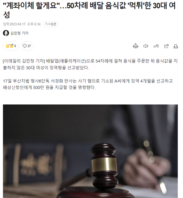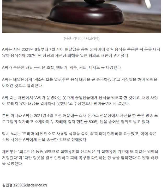 1.배달앱으로 54번에 거쳐 207만원 먹튀