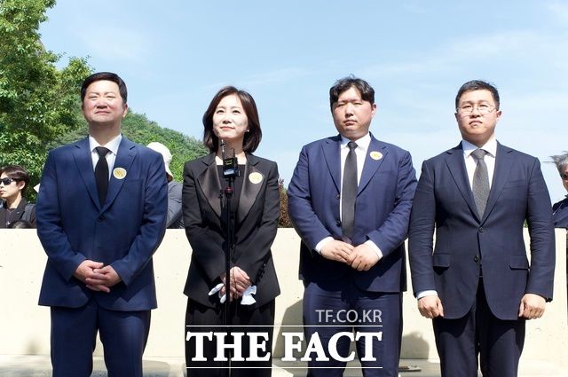 개혁신당 2기 지도부는 23일 경남 봉하마을에서 열린 노무현 전 대통령 15주기 추도식에 참석했다. 왼쪽부터 조대원 최고위원, 허은아 대표, 전성균 최고위원, 김성열 수석대변인. /개혁신당 제공