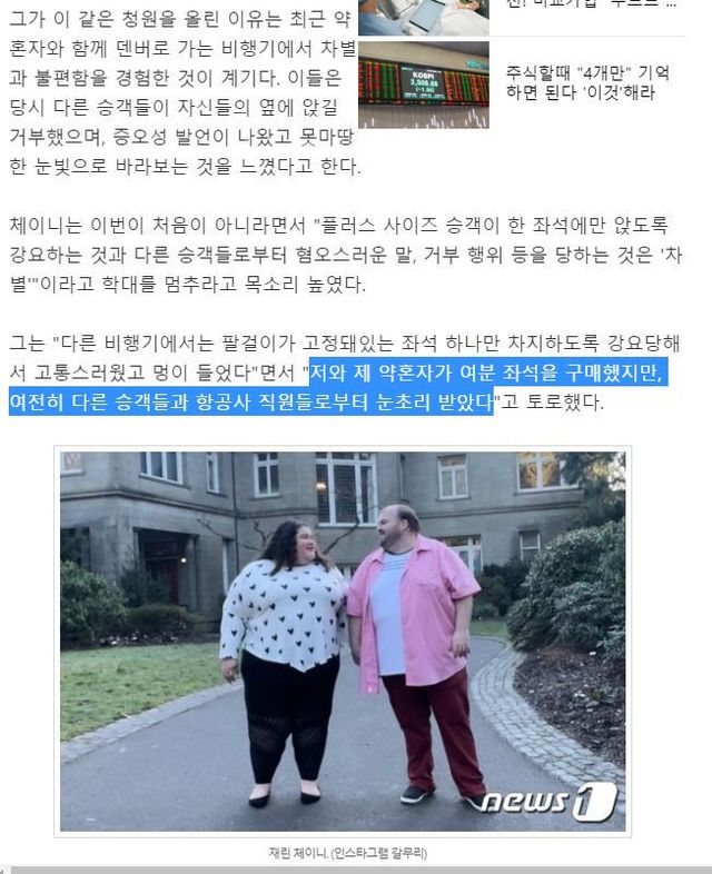 [“비행기 좌석 좁아 멍들었다” 고도비만 커플 청원올려 ㄷㄷ]