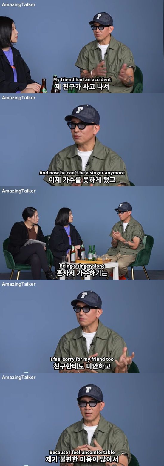 구준엽은 "그게 큰 이유는 제 친구가 사고 나서 이제 가수를 못 하게 됐고, 혼자서 가수하기는 친구한테도 미안했다"고 전했다.