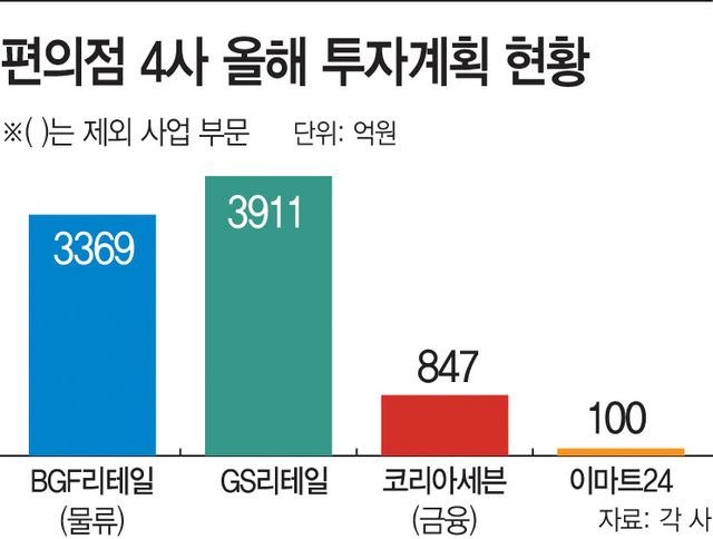 23일 유통업계에 따르면 편의점 4사가 올해 진행하는 투자 금액은 100억원부터 3900여 억원까지 다양하다. 업체들은 이 같은 투자를 통해 매출 증대에 영향을 끼칠 것으로 기대하고 있다.