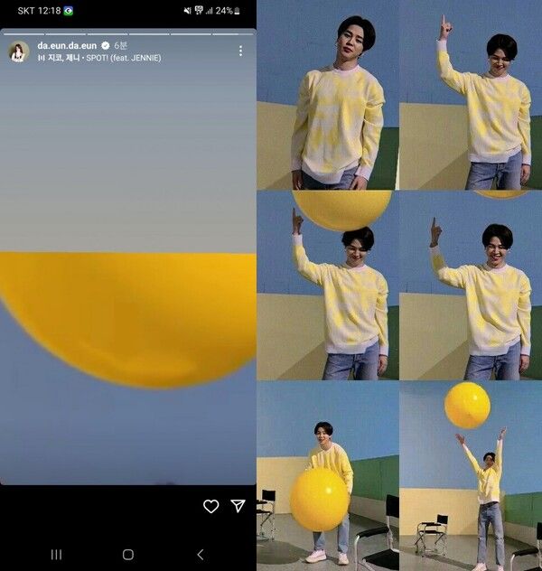 노란색 풍선이 담긴 영상도 올렸는데, 지민을 떠올리게 한다는 '황당한 논리'로 누리꾼들의 추측이 이어지게 되었다.