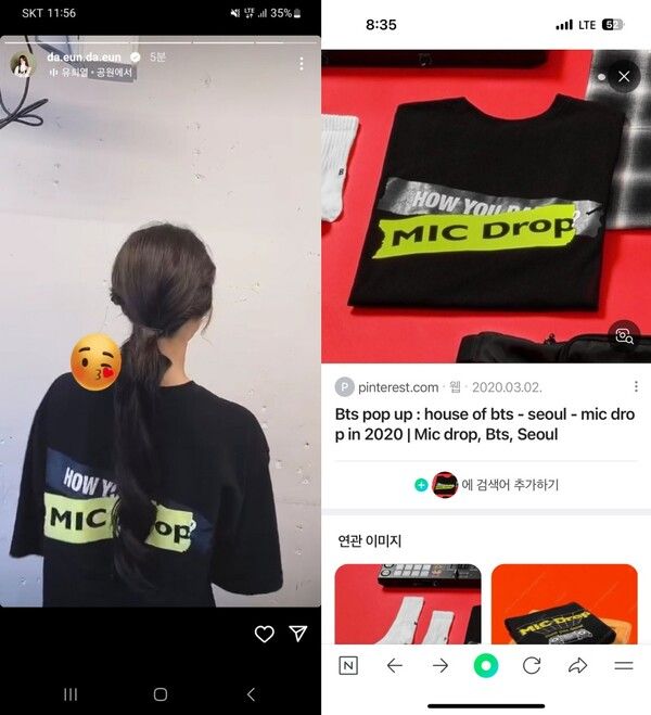 그리고 송다은은 방탄소년단 굿즈 티셔츠를 입은 본인의 모습을 공개, 'DA EUN' 'ji min'이라고 적힌 커플 이어폰 사진도 올렸는데, 이는 현재 삭제된 상태이다.