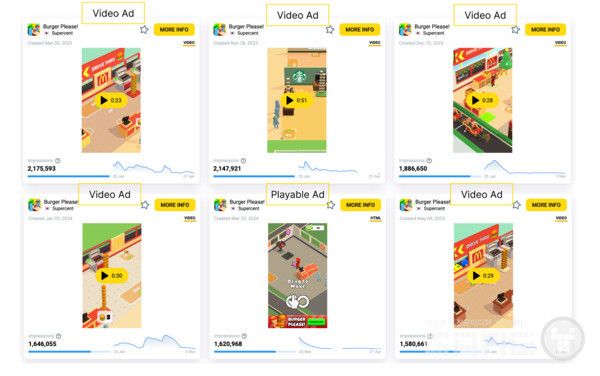 위의 그래프만 봐도 그 말을 확인할 수 있다. 2023년에 출시된 게임 중 전 세계 무료 순위 50위권 내에 진입한 게임은 단 한 개뿐이며, 이는 2022년의 5분의 1에 불과하고 2021년 정점에 비하면 10분의 1에 불과하다. 그리고 이 유일한 게임은 슈퍼센트의 버거 플리즈였다.