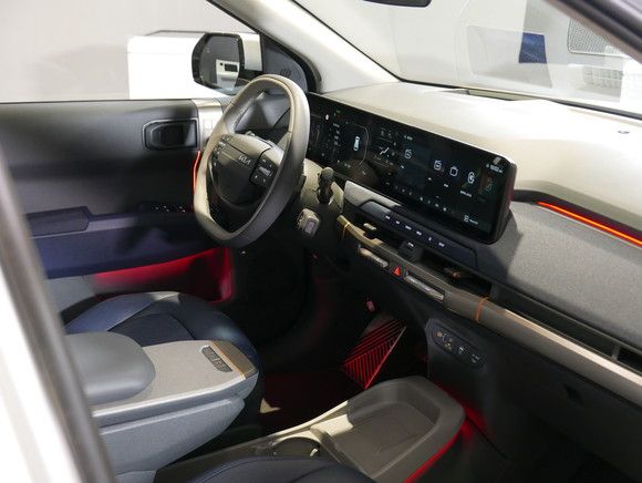 실내는 고객의 다양한 사용 목적을 충족시킬 수 있도록 구성했다. EV3는 12.3인치 클러스터, 5인치 공조, 12.3인치 인포테인먼트 시스템 총 세 개의 화면이 매끄럽게 이어지는 파노라믹 와이드 디스플레이와 12인치 윈드실드 타입 헤드업 디스플레이가 적용돼 주행에 필요한 각종 정보를 효과적으로 전달한다.